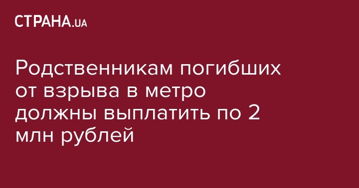 Родственникам погибших от взрыва в метро должны выплатить по 2 млн рублей