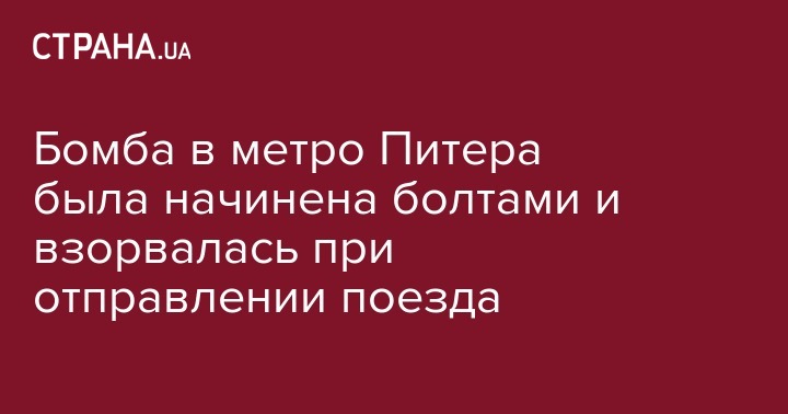 По предварительным данным, взрыв в метро Санкт-Петербурга осуществил не террорист-смертник. Характер повреждений в вагоне свидетельствует о том, что взрывное устройство было оставлено в поезде перед тем, как он тронулся со станции "Сенная площадь", передает российский "Интерфакс".