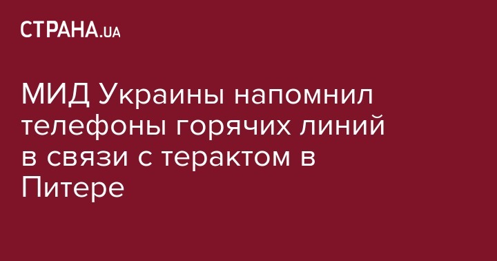 МИД Украины напомнило украинцам, которые находятся в Санкт-Петербурге, номера "горячих линий" российских ведомств и украинского генконсульства в связи с терактом в метро Питера. Соответствующая информация была обнародована на странице в Facebook Департамента консульской службы МИД Украины.