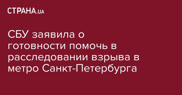Служба безопасности Украины заявила о готовности оказать содействие в расследовании взрыва в метро Санкт-Петербурга, который прогремел вчера, 3 апреля. Об этом сообщает "112 Украина".