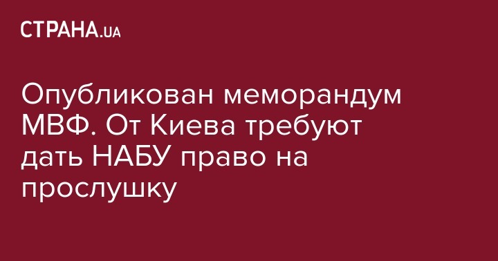 В МВФ потребовали до конца этого года дать право Национальному антикоррупционному бюро Украины (НАБУ) самостоятельно снимать информацию с каналов связи и проведения следственных действий под прикрытием. Об этом говорится в тексте меморандума Украины с Международным валютным фондом, пишет "Интерфакс-Украина".