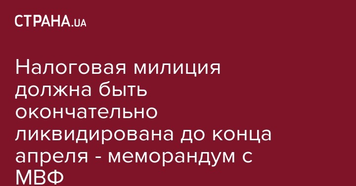 Налоговая милиция должна быть окончательно ликвидирована до конца апреля - меморандум с МВФ