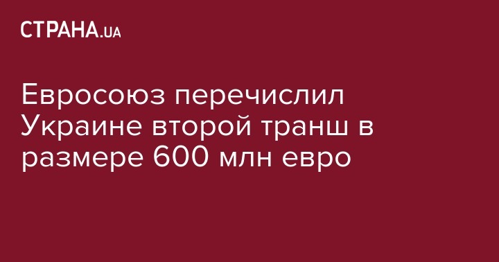 Европейский Союз перечислил Украине второй транш макрофинансовой помощи в размере 600 млн евро, сообщил президент Украины Петр Порошенко. "Сегодня ЕС совершил второй транш в размере 600 млн евро для Украины в рамках макрофинансовой помощи для стабилизации ситуации и реформирования экономики Украины", - написал Порошенко на своей странице в микроблоге Twitter во вторник.