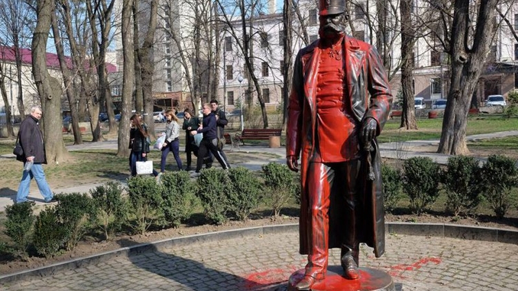 Акт вандализма произошел 24 марта, потому как "масляная краска на памятнике уже сухая, а снизу, у постамента, высохнуть еще не успела", - предполагает издание, чей фотограф и сообщил о происшествии утром того же дня.