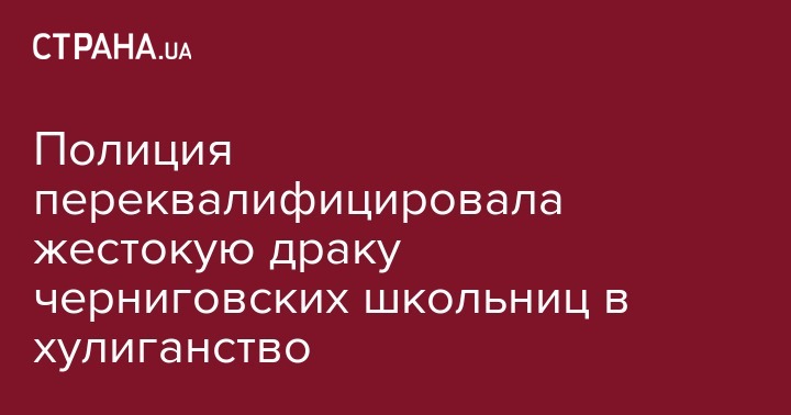 Полиция Чернигова переквалифицировала уголовное производство по жестокому избиению тремя школьницами их сверстницы из ст.125 (умышленное легкое телесное повреждение) в ст. 296 ч. 2 - хулиганство, совершенное группой лиц. Об этом сообщает пресс-служба местной полиции.
