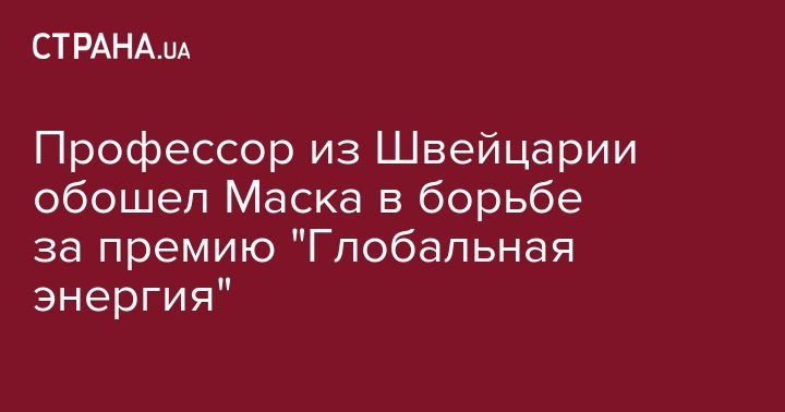 Профессор из Швейцарии обошел Маска в борьбе за премию "Глобальная энергия"