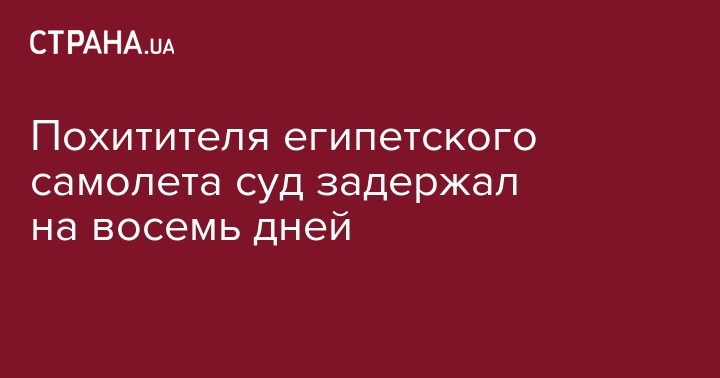 Суд кипрского города Ларнака постановил задержать на восемь дней похитителя самолета EgyptAir, 59-летнего гражданина Египта. Об этом сообщают сегодня "РИА Новости"