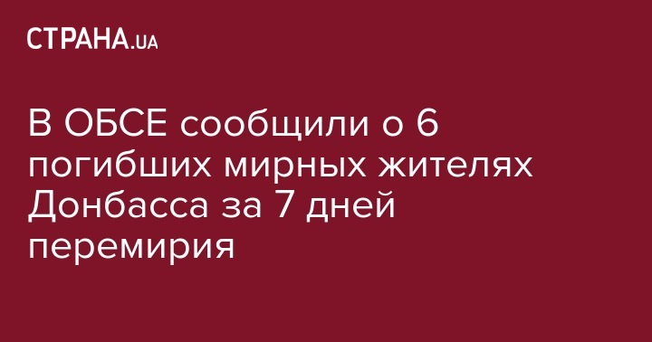 В ОБСЕ сообщили о 6 погибших мирных жителях Донбасса за 7 дней перемирия