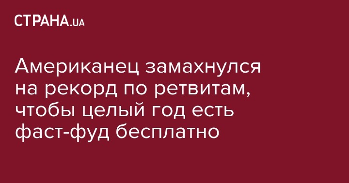 Американец замахнулся на рекорд по ретвитам, чтобы целый год есть фаст-фуд бесплатно