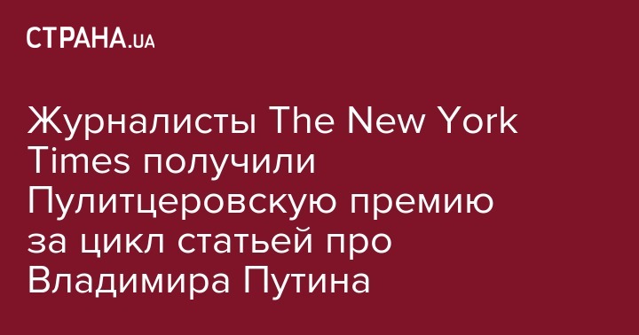 Сотрудники газеты The New York Times получили Пулитцеровскую премию по международной журналистике за материалы о президенте России Владимире Путине.