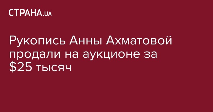 В Москве на аукционе продали рукопись "Поэмы без героя" Анны Ахматовой за 1,45 млн рублей (25 691 долларов), что почти вдвое превышает первоначальную оценку лота. Об этом сообщили в пресс-службе аукционного дома "Литфонд", передает "ТАСС".