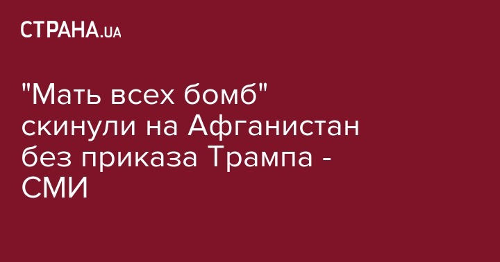 Агенство Associated Press со ссылкой на источники в Пентагоне утверждает, что нанесение авиаудара по позициям ИГИЛ в Афганистане с первым в истории применением мощнейшей неядерной бомбы GBU-34/B было произведено без приказа президента США Дональда Трампа.