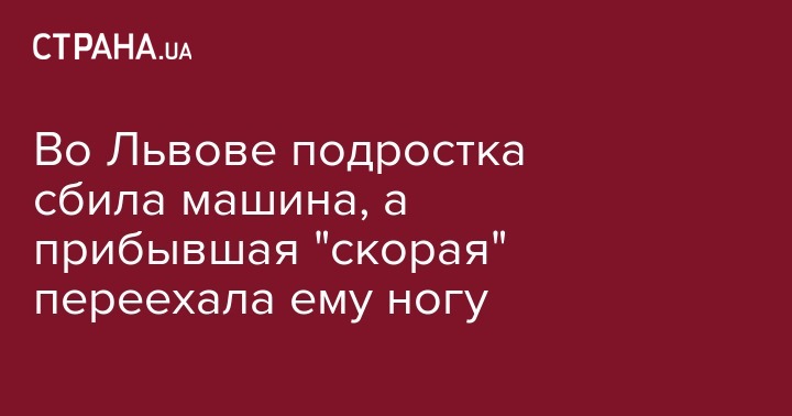Во Львове подростка сбила машина, после чего прибывшая на место происшествия "скорая" наехала на ногу пострадавшего. Об этом сообщает портал "Варта1" на своей странице в соцсети "ВКонтакте".