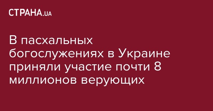 Участие в пасхальных богослужениях в ночь с 15 на 16 апреля приняли более 7,8 млн украинцев.Об этом сообщает Нацполиция.
