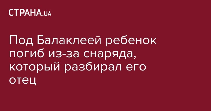 В Харьковской области, в селе Яковенково Балаклейского района, погиб 4-летний ребенок после того, как его отец попытался разобрать снаряд. Об этом сообщает "Интерфакс-Украина".