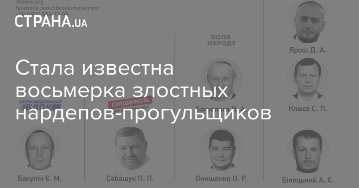 7. Дмитрий Ярош (внефракционный) - который отсутствовал без уважительных причин на 80% заседаний за всю каденцию;