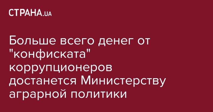 Больше всего денег от "конфиската" коррупционеров достанется Министерству аграрной политики