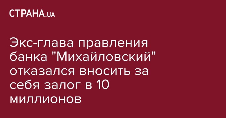 Бывший председатель правления банка "Михайловский" Игорь Дорошенко не намерен вносить залог 10 млн гривен. Об этом пишут "Украинские новости" со ссылкой на источник из окружения Дорошенко.