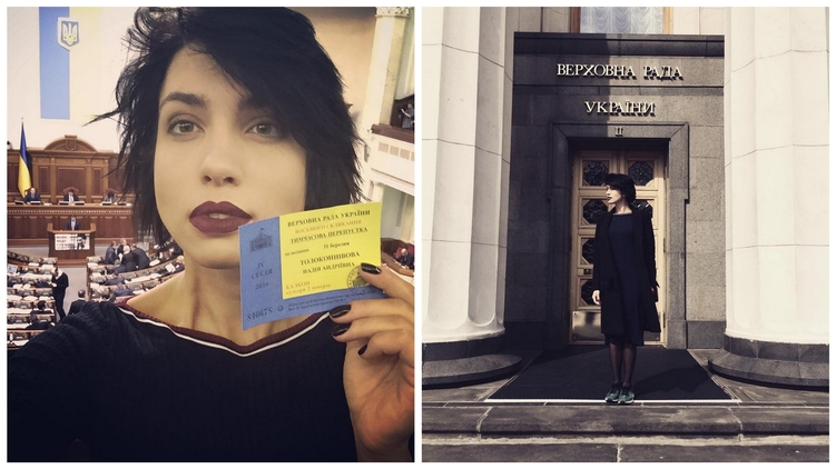 Так, она побывала в Верховной Раде. В ложе прессы Толоконникова сделала несколько селфи и сходила в парламентскую столовую.