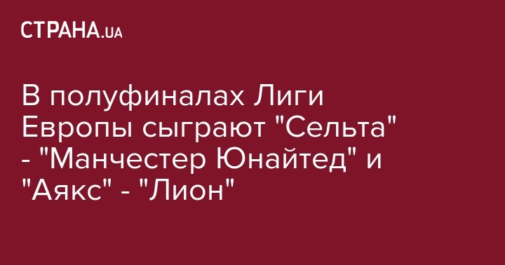 В полуфиналах Лиги Европы сыграют "Сельта" - "Манчестер Юнайтед" и "Аякс" - "Лион"