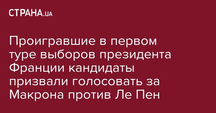 Во Франции кандидаты, потерпевшие поражение в первом туре президентских выборов (Эйро, Казнёв, Фийон и Амон), просят своих избирателей отдавать голоса во втором раунде за лидера движения "На марше" Эмманюэля Макрона. Об этом сообщает ТАСС.