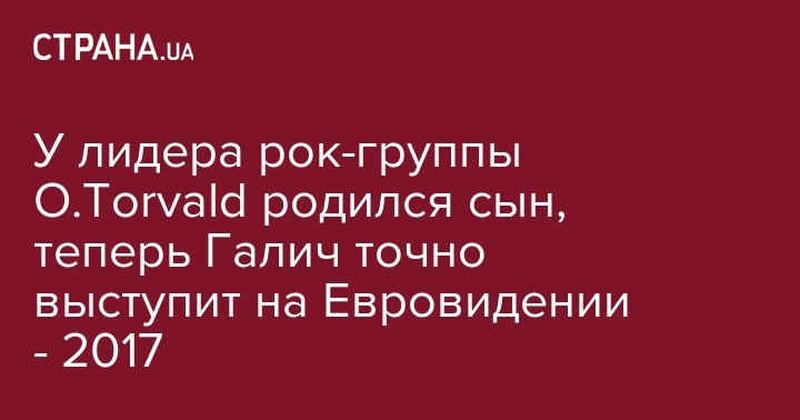 У солиста группы О.Torvald, которая в этом году представляет Украину на Евровидении-2017, родился сын. Об этом "Стране" стало известно из собственных источников.