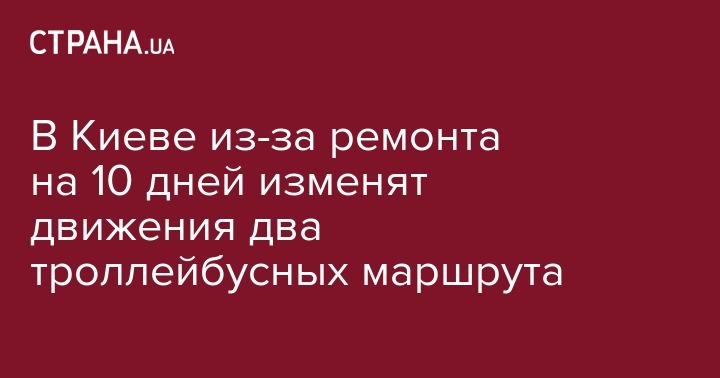 В Киеве из-за ремонта на 10 дней изменят движения два троллейбусных маршрута