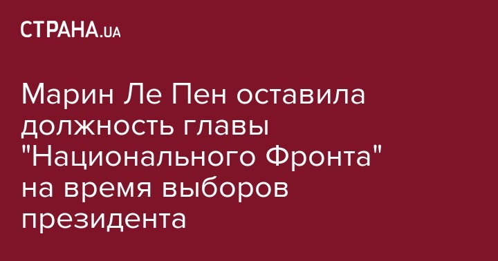Ультраправый кандидат в президенты Франции Марин Ле Пен покинула должность главы "Национального Фронта" на время проведения выборов. Об этом она сказала в эфире местного телеканала, передает ВВС.