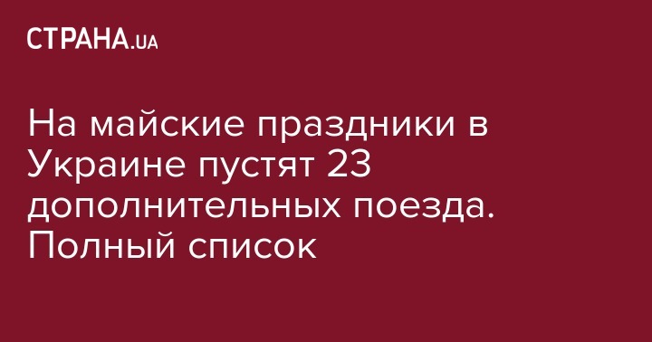 На майские праздники в Украине пустят 23 дополнительных поезда. Полный список