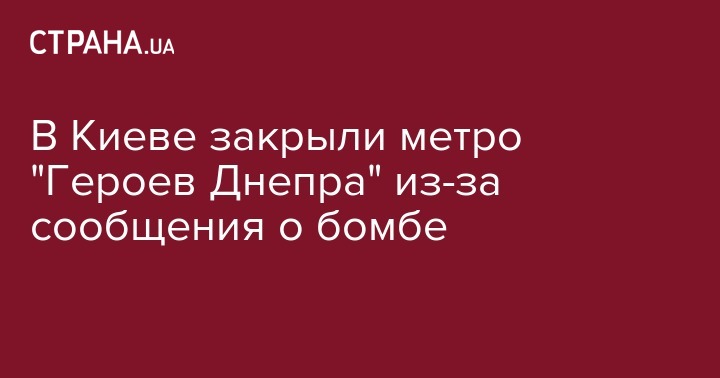 В Киеве закрыли станцию метро "Героев Днепра" в связи с получением информации об угрозе взрыва. Об этом сообщает пресс-служба киевского метрополитена в Facebook.
