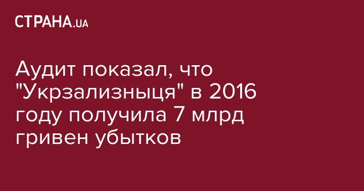 Аудит показал, что "Укрзализныця" в 2016 году получила 7 млрд гривен убытков