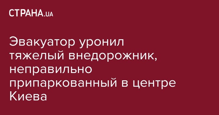 Эвакуатор уронил тяжелый внедорожник, неправильно припаркованный в центре Киева