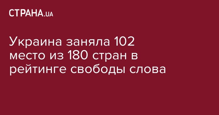 В новом рейтинге свободы слова от "Репортеров без границ" Украина заняла102 место из 180 после таких стран как Монголия, Сьерра-Леоне, Кения, Мадагаскар, Киргизия. Рейтинг обнародован на сайте международной журналистской организации.