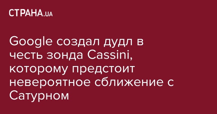 Поисковая система Google изменила главную страницу в честь прохождения зонда Cassini между Сатурном и его кольцами. Об этом сообщается в официальном блоге Google.