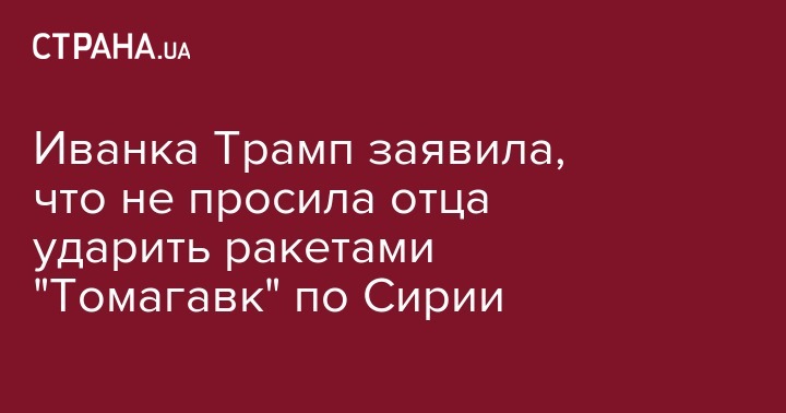 Иванка Трамп заявила, что не просила отца ударить ракетами "Томагавк" по Сирии