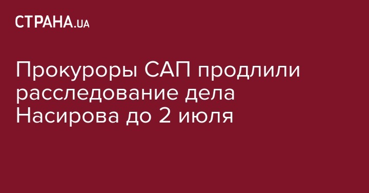 Сотрудники специализированной антикоррупционной прокуратуры (САП) продлили предельный срок расследования уголовного производства в отношении отстраненного председателя Государственной фискальной службы (ГФС) Романа Насирова до 2 июля 2017 года.