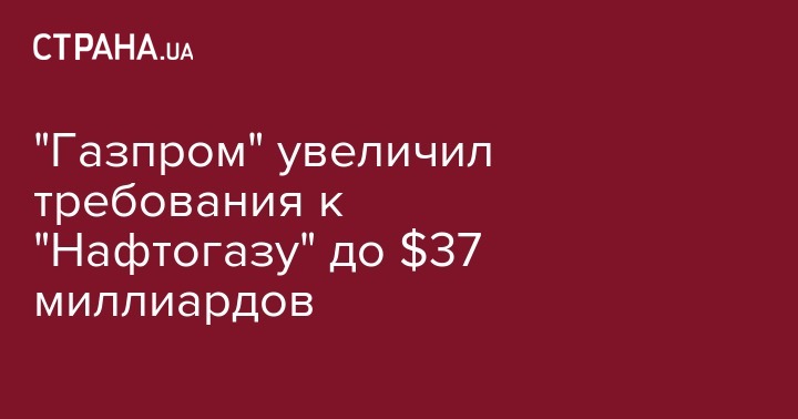 Российский "Газпром" увеличил свои требования к "Нафтогазу Украины" в рамках спора в арбитраже Стогкольма с 31,7 до 37 миллиардов долларов. Об этом говорится в отчете российской компании, передают "РИА Новости".
