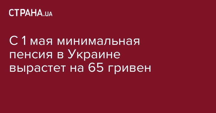С 1 мая минимальная пенсия в Украине вырастет на 65 гривен