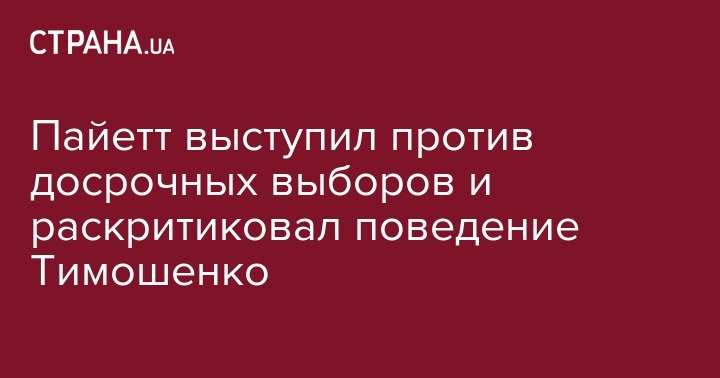 Посол США в Украине Джеффри Пайетт советует не проводить в ближайшее время внеочередные выборы в Верховную Раду Украины и критикует выдвинутые лидером партии "Батькивщины" Юлией Тимошенко требования, которые, по его мнению, могут повредить сотрудничеству Украины с Международным валютным фондом (МВФ), сообщает "Интерфакс-Украина".
