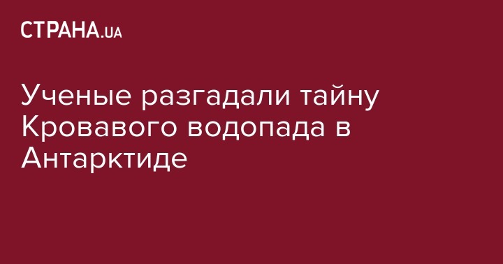 Исследователи Антарктики, которые в далеком 1911 году обнаружили на континенте водопад кроваво-красного цвета, предположили, что необычный цвет воде придают микроскопические водоросли. Место получило название Кровавого водопада, однако в воде не оказалось ни крови, ни водорослей. Об этом сообщает "Телеграф".