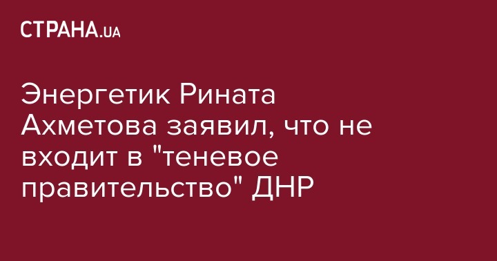 Энергетик Рината Ахметова заявил, что не входит в "теневое правительство" ДНР