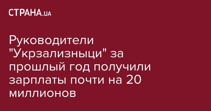 Руководители "Укрзализныци" за прошлый год получили зарплаты почти на 20 миллионов