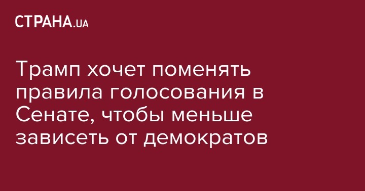 Президент США от Республиканской партии Дональд Трамп хочет изменить правила голосования в Сенате, чтобы не зависеть от членов Демократической партии и принимать нужные решения голосам только республиканцев. Об этом президент США сообщил в Twitter.