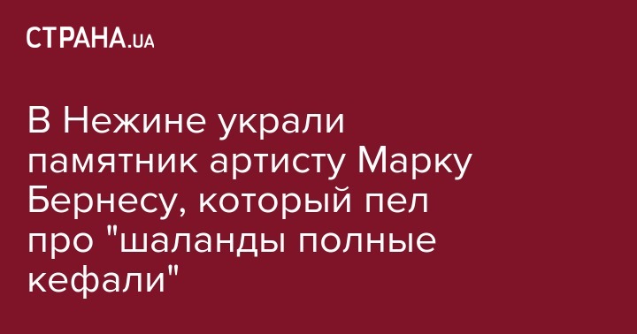 "Ничего святого. В Нежине на Черниговщине украли памятник Марку Бернесу в Графском парке. Кто не знает, Бернес родился в Нежине, и в 2011 году, к столетию со дня его рождения был открыт памятник великому артисту. А прошлой ночью его украли, вероятно, на металл", - написал депутат.