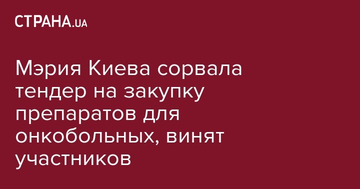 Киевская городская государственная администрация заявила о срыве торгов по закупке медпрепаратов для онкобольных. Как сообщил заместитель председателя КГГА Николай Поворозник, фактический срыв тендера произошел из-за недостатка участников.