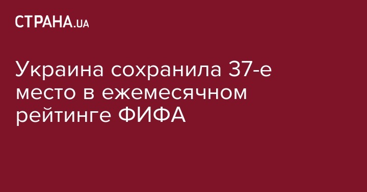 Украина сохранила свои позиции в традиционном ежемесячном рейтинге ФИФА. Об этом говорится на на официальной странице международной федерации футбола.