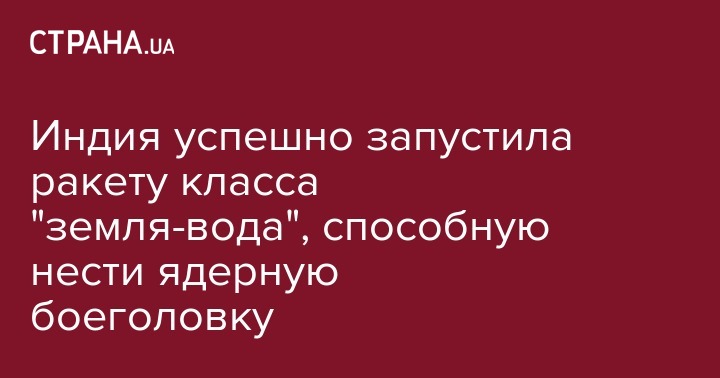 Индия успешно запустила ракету класса "земля-вода", способную нести ядерную боеголовку
