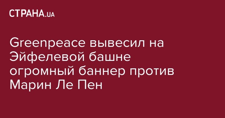 Greenpeace вывесил на Эйфелевой башне огромный баннер против Марин Ле Пен