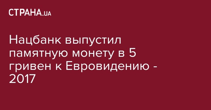 С 11 мая Нацбанк вводит в обращение памятную монету, посвященную проведению Евровидения-2017 в Украине. Об этом сообщается на сайте НБУ.