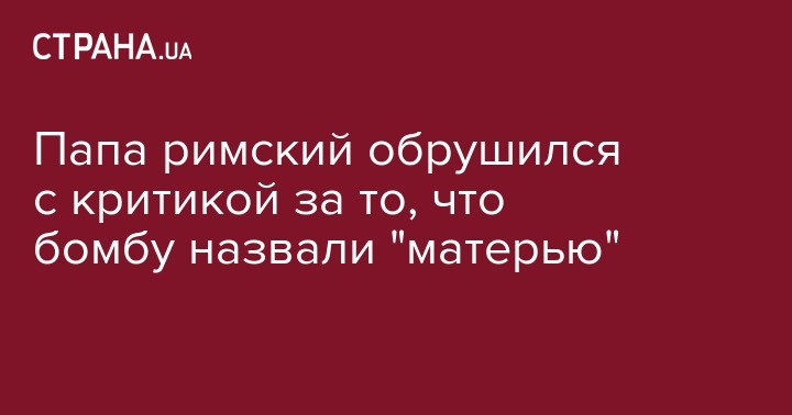 "Мне было стыдно, когда я услышал это имя. Мать дает жизнь, а эта бомба несет смерть. И мы называем это устройство матерью. Что происходит?", - недоумевает понтифик.